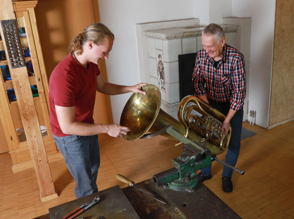 A musical instrument is an object of utility and requires regular service and maintenance in order to function optimally. Whether trumpet, flugelhorn, French horn, trombone, tenor horn, baritone, euphonium or tuba – all brass instruments get repaired here.